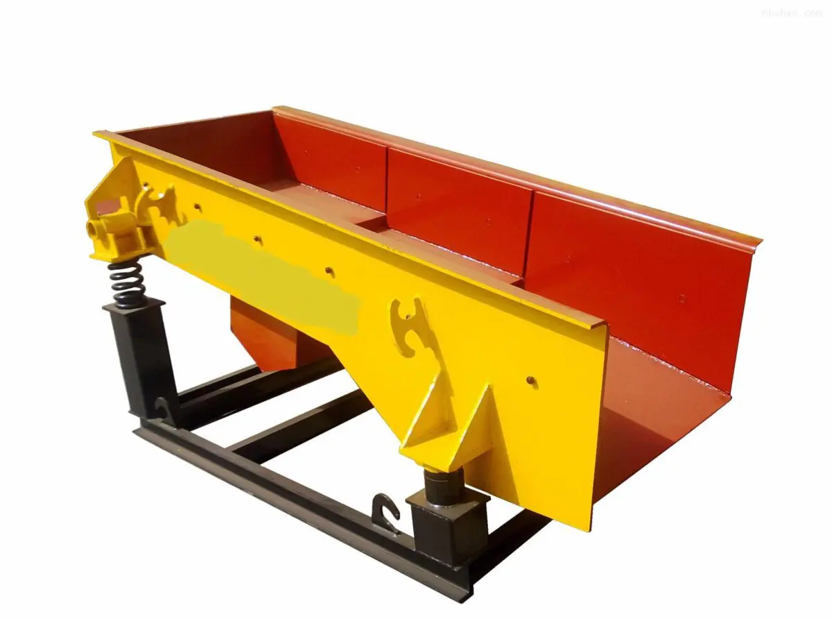 The vibrator is composed of two specific locations of the eccentric shaft gear meshing, the assembly must be marked by the two gear meshing, driven by the motor, the two eccentric shaft rotation, resulting in huge linear vibration synthesis, so that the body for forced vibration in the spring, then vibration material as a driving force, slip and throwing motion in the trough, so that the material forward to achieve the purpose of feeding. When the material is through the slot on the screen strip, the smaller material can fall through the sieve gap, not through the next crushing, the screening effect.